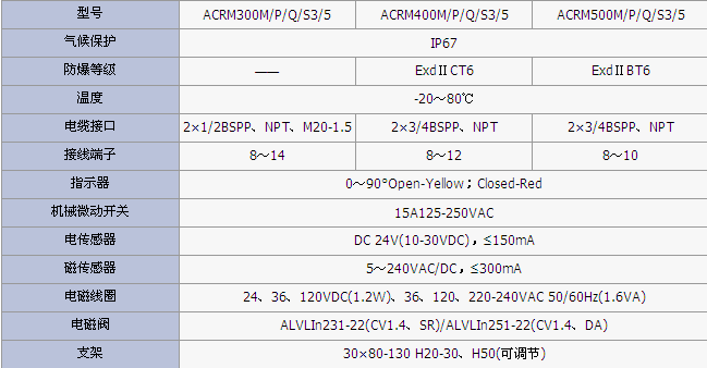 产品简介:型号ACRM300M/P/Q/S3/5ACRM400M/P/Q/S3/5ACRM500M/P/Q/S3/5气候保护IP67防爆等级&mdash...